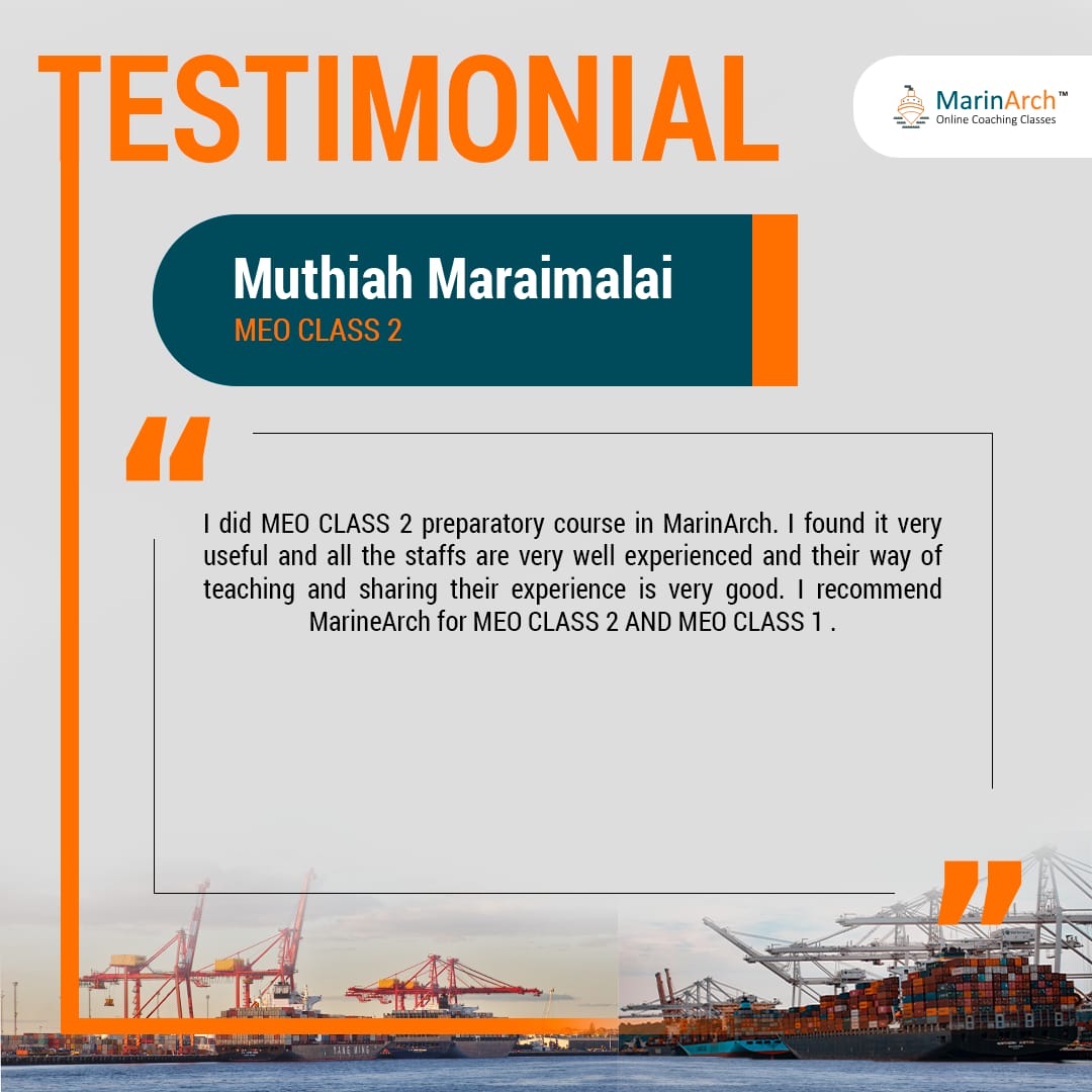 MarinArch is a live tutorial session which prepare the candidates in the systematic way to excel their Marine Engineer Officer exams. It is the most convenient and economical way to prepare for the MEO exams.