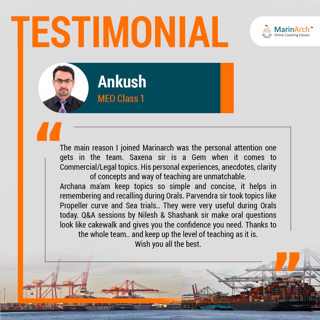 MarinArch is a live tutorial session which prepare the candidates in the systematic way to excel their Marine Engineer Officer exams. It is the most convenient and economical way to prepare for the MEO exams.
