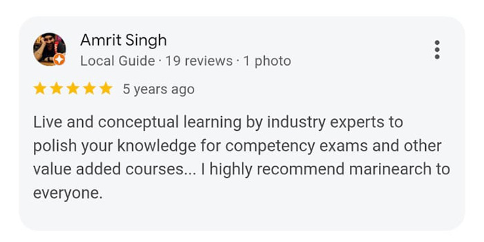 It's result oriented program where lectures are conducted by qualified person in marine field. A candidate can do the group study sitting at his/her/ home from any part of world so no waste of time and money in travelling and boarding.